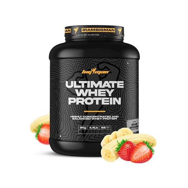 Ultimate Whey Protein de BigMan es una fórmula de proteína que contiene concentrado de suero de leche ideal para utilizar después del entrenamiento para favorecer el desarrollo muscular, retrasar la aparición de la fatiga y acelerar la recuperación.