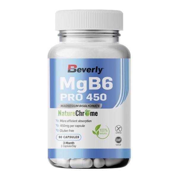 MgB6 Pro 450 Magnesio Bisglicinato de Beverly Nutrition es un suplemento en cápsulas que contiene magnesio bisglicinato, que es la forma de mayor biodisponibilidad de magnesio que existe en la actualidad.