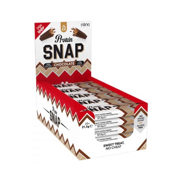 Protein Snap de NANO Supps son unas deliciosas barritas crujientes de chocolate con leche que una vez que las pruebes ya no podrás parar.