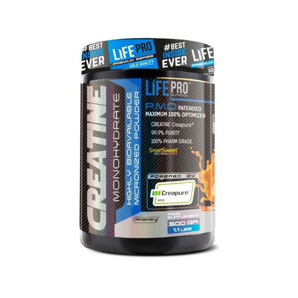 Creatine Monohydrate Creapure de LifePro Nutrition es un suplemento en polvo que contiene monohidrato de creatina Creapure® con un delicioso sabor a cola, lollipop o naranja.