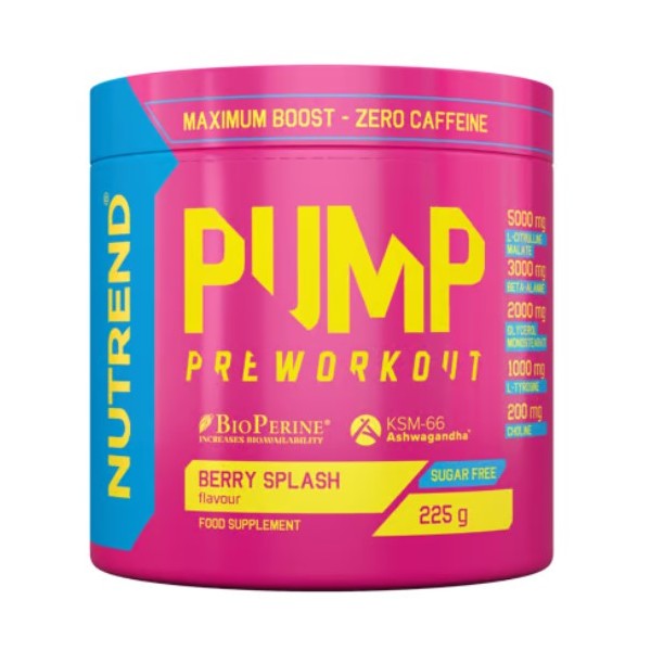 Pump Pre-Workout de Nutrend® es un suplemento en polvo que contiene una fórmula de pre-entrenamiento libre de estimulantes diseñada para proporcionarte el máximo bombeo muscular y una mejora del rendimiento físico y mental durante tu entrenamiento.