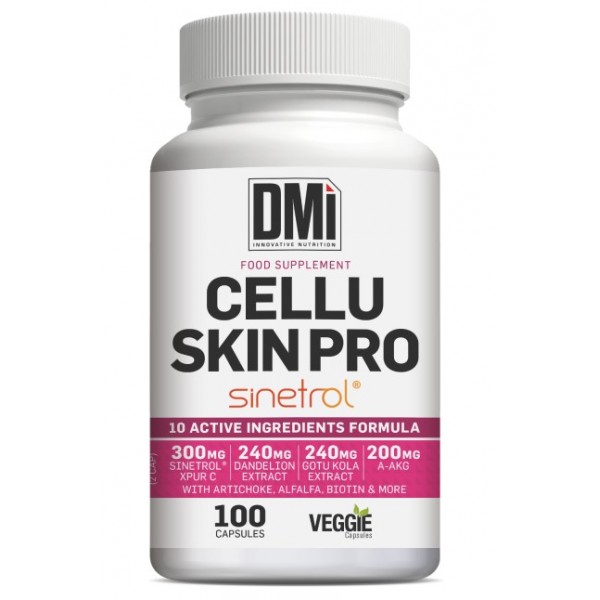 Cellu Skin Pro Sinetrol de DMI Innovative Nutrition es un suplemento en cápsulas vegetales que contiene una fórmula avanzada para mujeres con 10 ingredientes activos desarrollada para combatir la celulitis y mejorar la apariencia de la piel.