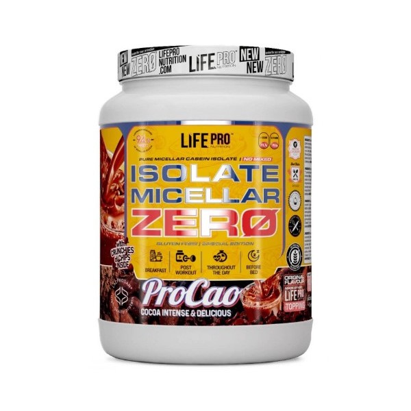 Isolate Micellar Zero Procao de LifePro Nutrition es un suplemento en polvo formulado con aislado de caseína micelar nativa Lacprodan Micelpure y concentrado de suero de leche Lacprodan SP-8011 instant de la más alta calidad.