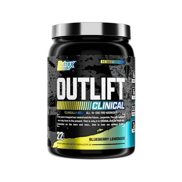 Outlift Clinical de Nutrex Research es un nuevo y completo pre-entreno todo en uno clínicamente dosificado y diseñado específicamente para mejorar la fuerza y el tamaño muscular.