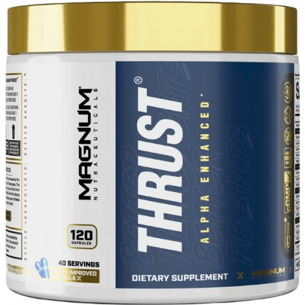 Thrust de Magnum Nutraceuticals es un suplemento en cápsulas diseñado para desbloquear aún más todo el poder de tu cuerpo para aumentar la producción natural de testosterona.