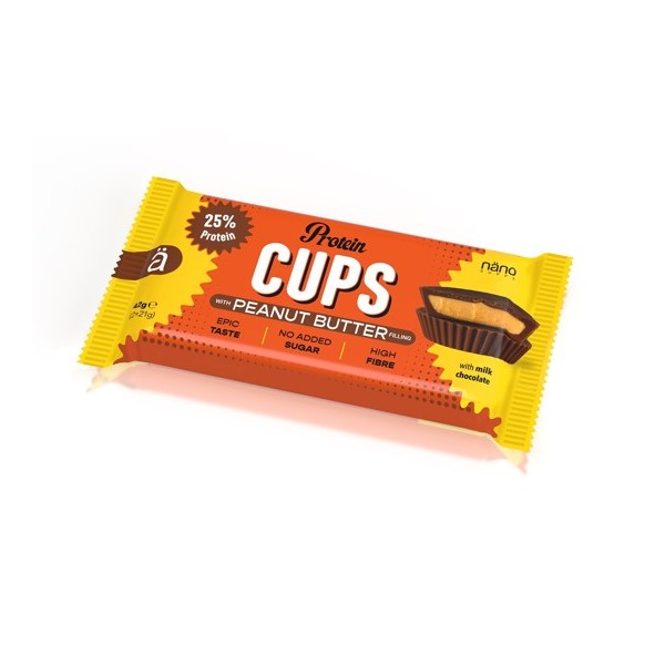 Protein Cups Peanut Butter de NANO Supps son unos deliciosos cups de chocolate con leche altos en proteína y rellenos de crema de cacahuete salada, que están elaborados sin azúcares añadidos para que puedas disfrutar de un increíble y saludable snack que podrás llevar a todas partes.