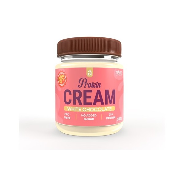 Protein Cream White Chocolate de NANO Supps es una deliciosa crema proteica de chocolate blanco con edulcorante y concentrado de proteína de suero elaborada sin azúcares añadidos y un sabor épico.
