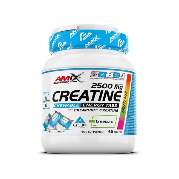 Creatine Chewable Energy Tabs Creapure® de la línea Amix™ Performance Series es un suplemento en tabletas masticables polvo que aporta 2.500 mg de monohidrato de creatina Creapure®, la creatina con mayor calidad del mundo.
