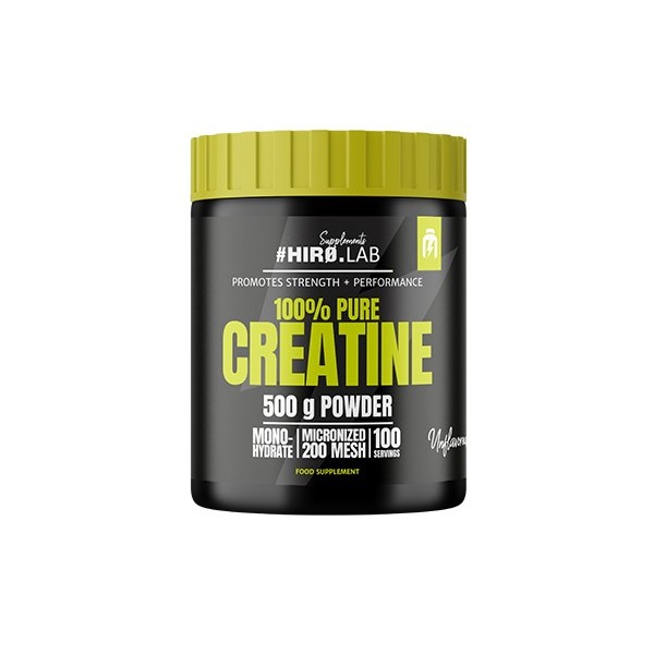 100% Pure Creatine de #Hiro.Lab es un suplemento en polvo que contiene el 100% de puro monohidrato de creatina micronizado a 200 mesh, es decir, 0.075 mm, lo cual supone una de las creatinas más puras y finas del mercado.