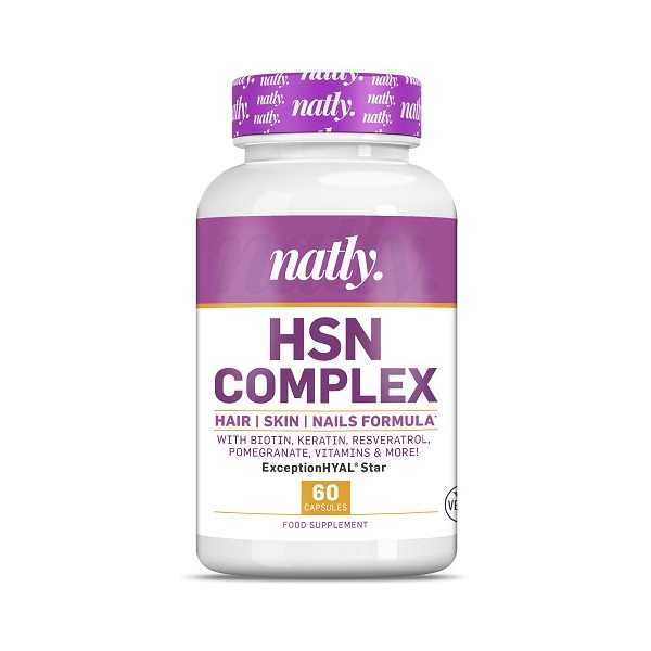 Hair, Skin & Nails Complex de Natly Nutrition es un suplemento en cápsulas vegetales que contiene una fórmula avanzada con 11 ingredientes activos en perfecta sinergia y desarrollada para mantener una óptima salud del pelo, la piel y las uñas.