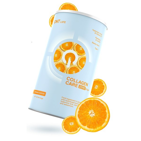 Collagen Care Zero de QNT es un suplemento en polvo a base de colágeno bovino hidrolizado, ácido hialurónico y vitamina C.
