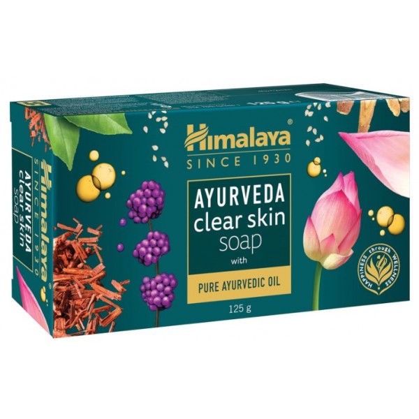 Ayurveda Clear Skin Soap de Himalaya es un jabón ayurvédico para una piel radiante que está especialmente fabricado con Kanaka Taila, un aceite ayurvédico tradicional, que se infusiona con una combinación exlusiva de hierbas, que incluyen Yashtimadhu, Priyangu, Kamala, Manjishta, Nagakesara y Tila Taila.