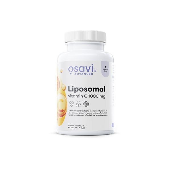 Liposomal Vitamin C 1000 mg de Osavi es un suplemento en cápsulas vegetales a base de vitamina C liposomada (Liposovit®-C), la forma liposomal es suave para el estómago y se absorbe mejor en el organismo.