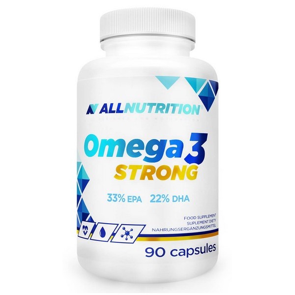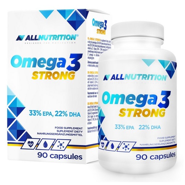 Omega 3 Strong de AllNutrition es un suplemento en perlas a base de aceite de pescado que contiene un 33% de EPA (ácido eicosapentaenoico) y un 22% de DHA (ácido docosahexaenoico), enriquecido con vitamina E que ayuda a proteger las células del estrés oxidativo.