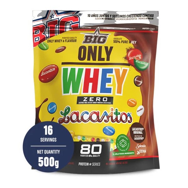 Descubre la nueva proteína Only Whey™ Zero Lacasitos fruto de una nueva colaboración de BIG® y LACASA®. Disfruta ya del genuino sabor a Lacasitos® que te acompañó durante tu infancia. Recupera uno de los sabores más auténticos de tu infancia, pero ahora con un contenido muy bajo en grasas e hidratos de carbono y con un aporte extraordinario de proteínas.
