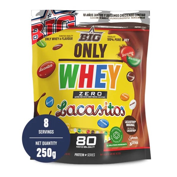 Descubre la nueva proteína Only Whey™ Zero Lacasitos fruto de una nueva colaboración de BIG® y LACASA®. Disfruta ya del genuino sabor a Lacasitos® que te acompañó durante tu infancia. Recupera uno de los sabores más auténticos de tu infancia, pero ahora con un contenido muy bajo en grasas e hidratos de carbono y con un aporte extraordinario de proteínas.