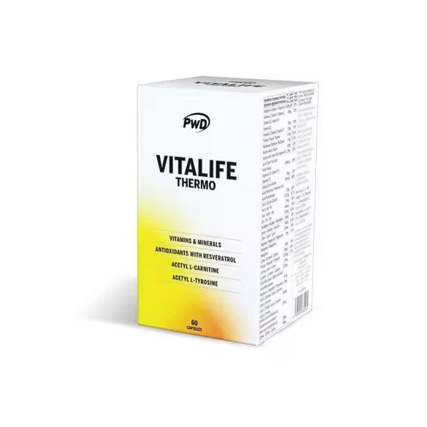 Vitalife Thermo de PWD Nutrition es un suplemento en cápsulas que contiene complejo de vitaminas, minerales, antioxidantes e ingredientes termogénicos, que ha sido diseñado para personas con un alto desgaste físico con sensación de cansancio, agotamiento o fatiga.
