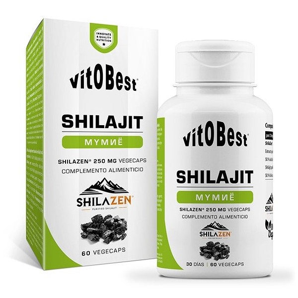Shilajat de VitoBest es un suplemento en cápsulas que proporciona 500 mg de ShilaZen®, un extracto patentado de shilajit con una eficacia contrastada por dosis de 2 cápsulas.