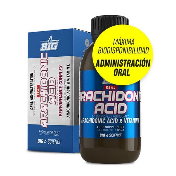 Real Arachidonic Acid de Big Nutrition es un suplemento en un novedoso formato líquido de administración oral, que contiene una nueva formulación de ácido araquidónico y vitamina E, que contribuye a regular el proceso de inflamación y crecimiento muscular en respuesta al daño mecánico de la musculatura producido tras el entreno.