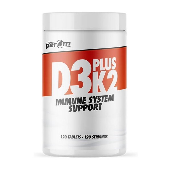 Vitamin D3 Plus K2 de Per4m es un suplemento en tabletas de alta gama formulado para brindar un sólido apoyo al sistema inmunológico y promover una salud ósea óptima.