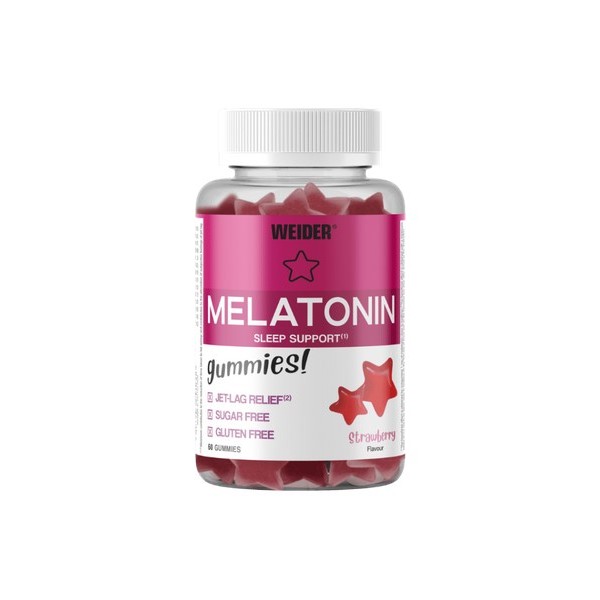 Melatonin de Weider es un suplemento en forma de deliciosas gominolas con sabor a fresa o arándanos que proporciona 1 mg de melatonina de alta calidad por dosis de 1 gominola.