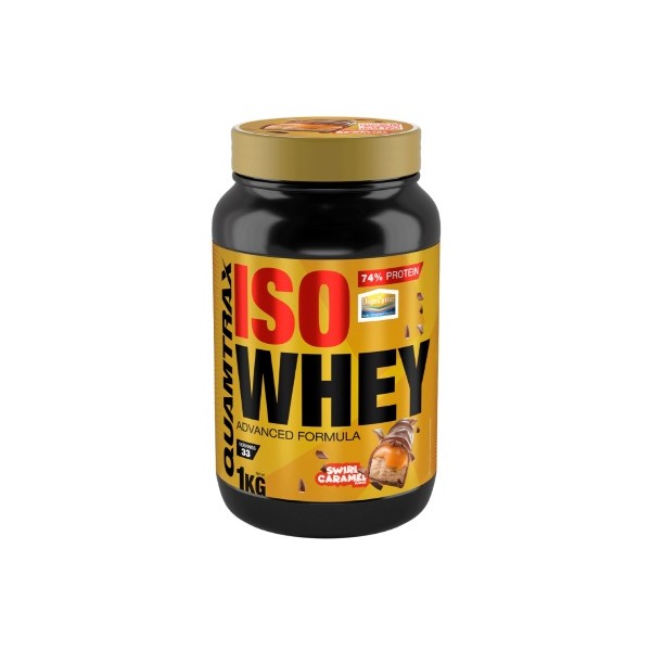 IsoWhey Swirl Caramel de Quamtrax Nutrition es un suplemento proteico en polvo que contiene una mezcla de aislado y concentrado de suero de leche obtenido por microfiltración de flujo cruzado, un proceso por el que se consigue una proteína que mantiene un valor biológico muy alto, pero con unas bajas concentraciones de lactosa, grasa y carbohidratos.