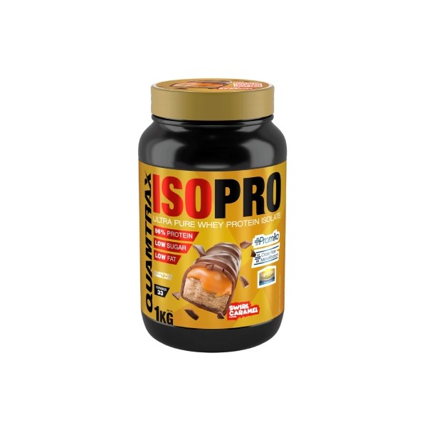 IsoPRO™ Swirl Caramel de Quamtrax Nutrition es un suplemento en polvo que contiene el 100% de aislado de proteína de suero de leche Promiko® de la más alta calidad enriquecido con el complejo multienzimático de DigeZyme®.