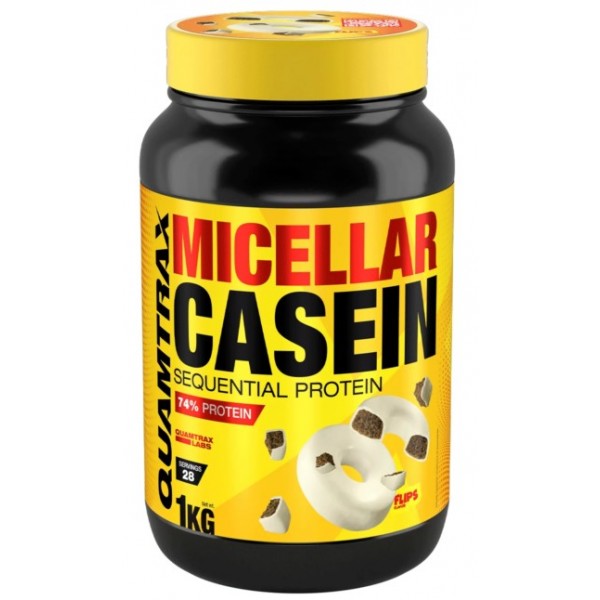 Micellar Casein Flips de Quamtrax Nutrition es suplemento en polvo que contiene caseína micelar, una proteína de digestión muy lenta que es capaz de liberar sus aminoácidos de una forma progresiva y de este modo alimentar a tus músculos durante un largo período de tiempo.