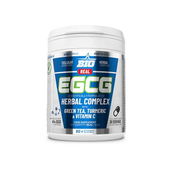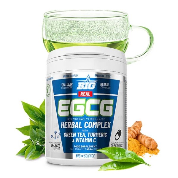 Real EGCG de la gama BIGscience es un suplemento en cápsulas vegetales que contiene una formulación exclusiva con una alta concentración de extracto de té verde puro, extracto de cúrcuma, vitamina C y extracto de pimienta negra, diseñada para quienes buscan un suplemento natural, basado en evidencia científica, que actúe sobre múltiples frentes para optimizar el metabolismo: menor absorción calórica, mayor gasto energético y mejor utilización de grasas.