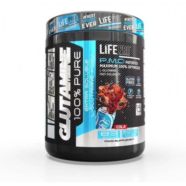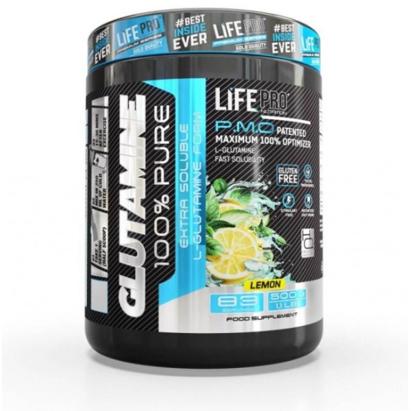 Glutamine de LifePro Nutrition es un suplemento en polvo a base de L-glutamina en polvo extra soluble y disponible en sabor a limón, sabor cola o sin sabor.