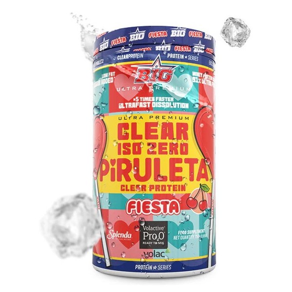 Clear Iso Zero Piruleta de Big es un suplemento proteico en polvo desarrollado a partir de la exclusiva patente Volactive® Pro2O® Ready to Mix de Volac®, ahora con un nuevo sabor desarrollado en colaboración con Fiesta®.