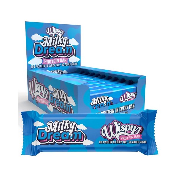 Wispy Protein Bar Milky Dream de Wispy Nutrition son unas deliciosas barritas altas en proteína con una irresistible cobertura de chocolate con leche y un sabor que no te dejará indiferente.