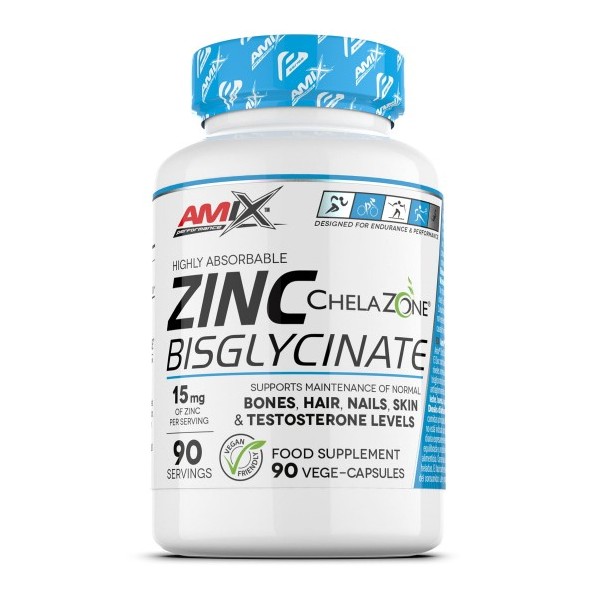Zinc Bysglicinate de Amix™ Nutrition es un suplemento en cápsulas vegetales a base de zinc en forma bisglicinato (ChelaZone®), una forma avanzada y altamente biodisponible de zinc quelado (unido a dos moléculas de glicina), reconocida por su excelente absorción y tolerancia digestiva.
