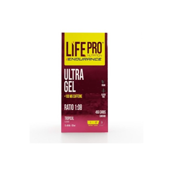Ultra Gel 1:08 Caffeine de LifePro Nutrition son unos geles energéticos con 100 mg de cafeína diseñados para aportar energía rápida y sostenida durante esfuerzos prolongados.