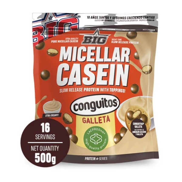 Micellar Casein Conguitos Galleta de Big es una caseína micelar de la más alta calidad hecha a base de Lacprodan® de Arla® Foods Ingredients, elaborada a partir de suero lácteo fresco y nutricionalmente equilibrado.
