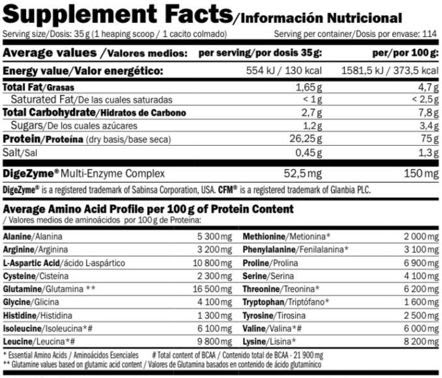 Utiliza CFM® Whey Protein, que es la proteína de suero más pura, enriquecida selectivamente por péptidos y fabricada por Glanbia. Esta proteína es ideal para aumentar de masa muscular sin aporte de grasas e hidratos añadidos, estimula la producción de óxido nítrico para inducir energía sostenida y favorece la recuperación muscular.