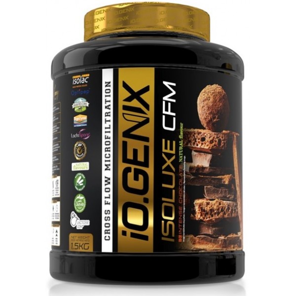 Isoluxe CFM de IO.Genix es un suplemento en polvo que contiene como única fuente proteica una combinación de aislado de proteína de suero de leche ISOLAC® y aislado de proteína de suero de leche hidrolizada OPTIPEP90®, para lograr la que posiblemente sea la mejor proteína que se pueda encontrar hoy en día, caracterizada por tener un contenido mínimo de grasas y azúcares, además de tener unos maravillosos sabores completamente naturales.