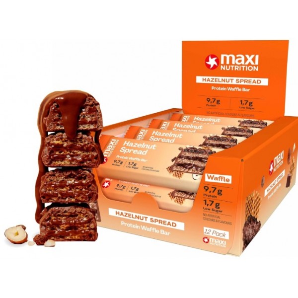 Protein Waffle Bar Hazelnut Spread de Maxi Nutrition son unas deliciosas barritas de proteína con cobertura de chocolate con leche, crispies proteicos, un núcleo de irresistible crema de avellanas entre varias capas de barquillo crujiente, pensadas para quienes buscan un snack sabroso pero que le permita cumplir con sus objetivos de nutrición.