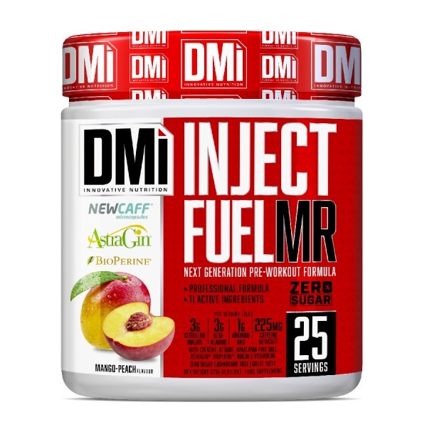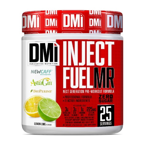 Inject Fuel MR de DMI Innovative Nutrition es un suplemento en polvo que contiene una fórmula de pre-entrenamiento ultra concentrada y multifuncional diseñada con 11 ingredientes clave para maximizar tu rendimiento, activar del óxido nítrico (NO), retrasar la fatiga y potenciar la concentración mental en cada sesión de entrenamiento.