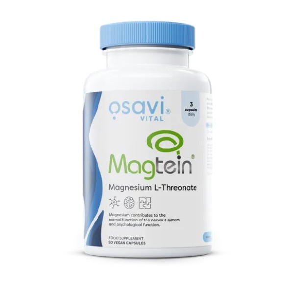 Magtein Magnesium L-Threonate de Osavi es un suplemento en cápsulas veganas a base del exclusivo y patentado Magtein®, magnesio en forma de magnesio L-treonato.
