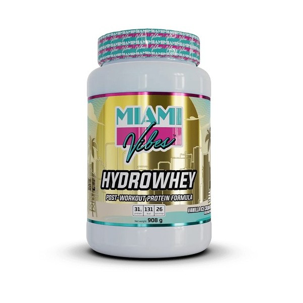 Hydrowhey de Miami Vibes es un suplemento en polvo que contiene una proteína ultrapura y de rápida absorción que combina lo mejor de la ciencia y el sabor.