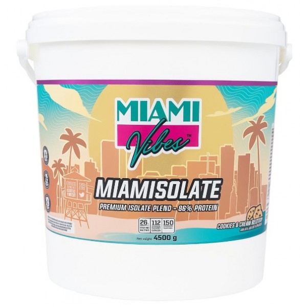 Miamisolate de Miami Vibes es un suplemento en polvo que contiene una proteína ultra pura y de rápida absorción, con un 87% de porcentaje proteico, elaborada con ingredientes premium para ofrecer máximo rendimiento, digestión ligera y un sabor irresistible en cada batido.