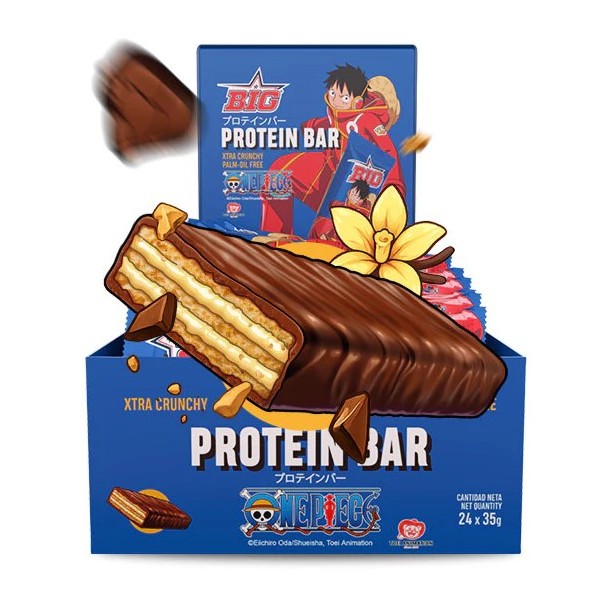 Redescubre todo el sabor de ONE PIECE® en esta nueva barrita extra crujiente, sin aceite de palma y con un contenido de proteína de la mejor calidad del 30%. Además y como de costumbre, todos los productos BIG® poseen certificación GMP desde la trazabilidad de origen de las materias primas hasta la entrega a nuestros clientes.