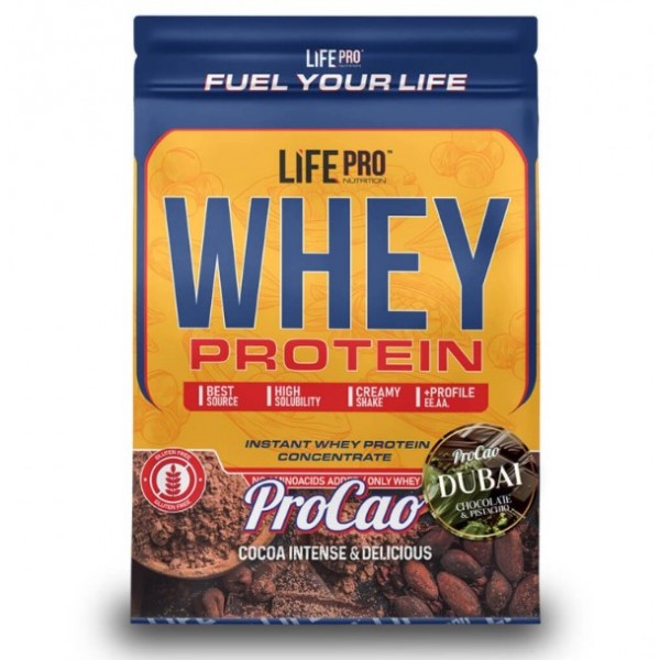 Whey Protein Procao Dubai de LifePro Nutrition es un suplemento en polvo que contiene el 100% de concentrado de proteína de suero WPC Lacprodan® SP-8011 Instant, una de las mejores materias primas existentes en el mercado producida por Arla Foods que se ha enriquecido con Tolerase® L, que cuenta con el sabor exclusivo Procao Dubai y un 85% de proteína.