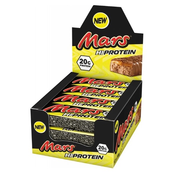 Las nuevas barritas Mars Hi Protein de Mars Protein Bars son una versión fitness de las deliciosas barritas Mars de toda la vida enriquecidas con 20 gramos de proteína por unidad, con el sabor original de chocolate con caramelo de las barritas Mars.