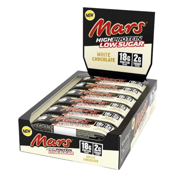 Las nuevas barritas Mars Hi Protein Low Sugar White Chocolate de Mars Protein Bars son una versión fitness de las deliciosas barritas Mars de toda la vida enriquecidas con 20 gramos de proteína por unidad, con el sabor original de chocolate con caramelo de las barritas Mars.