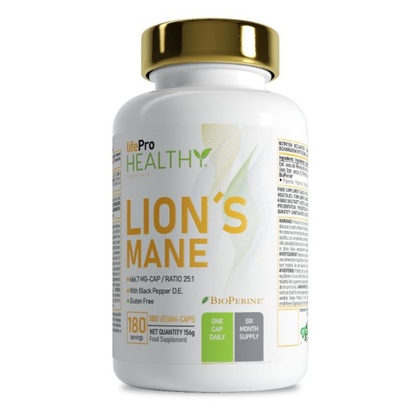 Lion´s Mane de LifePro Nutrition es un suplemento en cápsulas vegetales extracto 25:1 de cuerpo fructífero de Hericium erinaceus con BioPerine®: el nootrópico natural con mayor evidencia científica para estimular el NGF, potenciar la memoria y la concentración, proteger el cerebro del envejecimiento y equilibrar el estado de ánimo desde dentro.