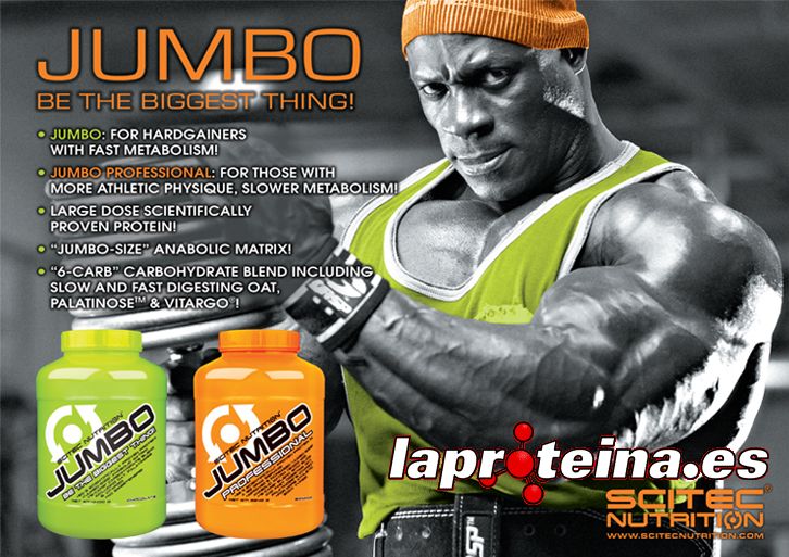 Jumbo Professional fue diseñado con proteína de suero de leche de rápida absorción, para que se adapte a su uso antes, durante y después del entrenamiento, tal y como lo indican las investigaciones científicas más recientes, para conseguir el máximo desarrollo.