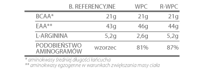R-WPC™ tiene más tirosina y arginina en comparación con el WPC normal. La tirosina y la arginina son dos aminoácidos implicados en la producción de la hormona del crecimiento. Además, L-histidina, que generalmente no se incluyen entre los aminoácidos esenciales, es muy importante en el culturismo.