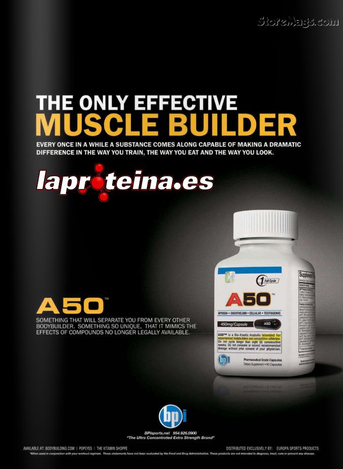 A50 es una fórmula para conseguir unos músculos, fuerza y vascularidad monstruosos. Este es el único producto de BPI Sports que ha sido promocionado incluso antes de su lanzamiento. A50 ha sido diseñado para conseguir un crecimiento óptimo en un tiempo mínimo, justo lo que todos desean. La oportunidad de ponerse enorme en muy poco tiempo. No encontrará nada que se le acerque a los resultados que obtendrá gracias a A50. ¿Desea conseguir músculo duro, definido y de alta calidad?